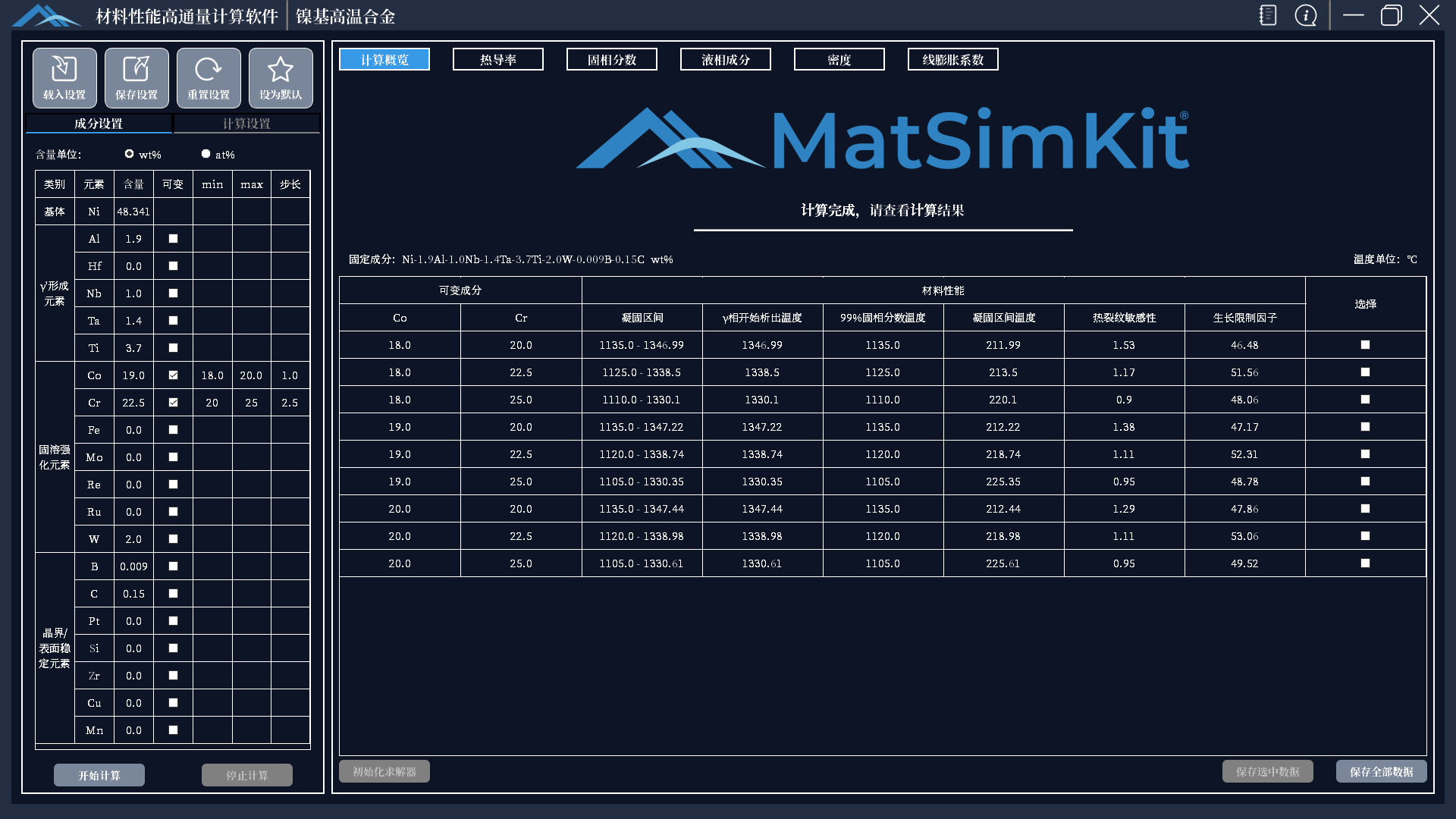自由定义参数空间,选定计算所关注的成分、计算模型、工艺参数等多维变量;